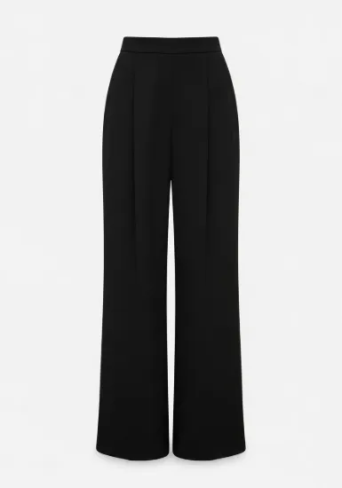 Şık ve rahat yüksek bel kesim, dökümlü wide leg pantolon. Günlük ve ofis kullanımına uygun.