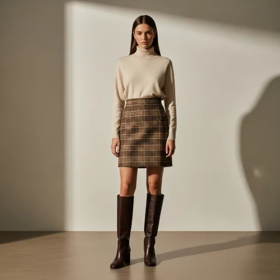 Klasik ekose desenini modern mini kesimle buluşturan Selina Etek, yün karışımlı dokusuyla soğuk havalarda içinizi ısıtırken stilinize sofistike bir dokunuş katar.